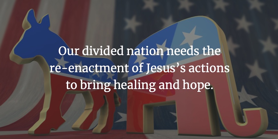 Our divided nation needs the re-enactment of Jesus’s actions to bring healing and hope. We may never find uniformity around national and foreign policies, but we can find unity through our commitment to re-enact the actions of Jesus. Don’t allow the political divide to create a kingdom divide within the bride of Christ. Don’t allow your Facebook interactions to bring disgrace to the face of Jesus or the Book of Life. Do allow your heart and mind to surrender to the One who is the Way, the Truth, and the Life (John 14:6). Do allow your actions to re-enact the actions of the Man of Sorrows (Isaiah 53:3) who conquered the world, not with earthly power but with heavenly love, and who will one day return to right all the wrongs and bring us eternal shalom.