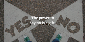 Whether it’s an old friend who invites you to dinner or a boss who asks you to take on an important and high-profile project, or a neighbor who begs you to help with the school cake sale, the very thought of saying no literally brings us physical discomfort. We feel guilty. We don’t want to let someone down. We are worried about damaging the relationship. But these emotions muddle our clarity. They distract us from the reality of the fact that either we can say no and regret it for a few minutes, or we can say yes and regret it for days, weeks, months, or even years (Essentialism, 135).