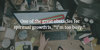 One of the great obstacles for spiritual growth, of course, is, “I’m too busy.” But are we…really? The truth of the matter is that most of us waste copious amounts of time. Comer goes on to say, “The average millennial is on their phone nearly four hours a day; most adults ages thirty-five to forty-four watch two to three hours of TV a day. Combined, that’s almost a full-time job. Think of what we could do with even a tithe of that time” (idem.).