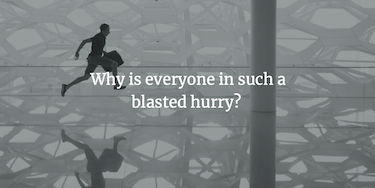 We scan through the news headlines to be “informed,” but never slow down to read the articles. We get frustrated if we have to wait three-extra minutes in traffic. We listen to our podcasts on 2x speed. We get annoyed if our wi-fi download speed is less than lightning fast.