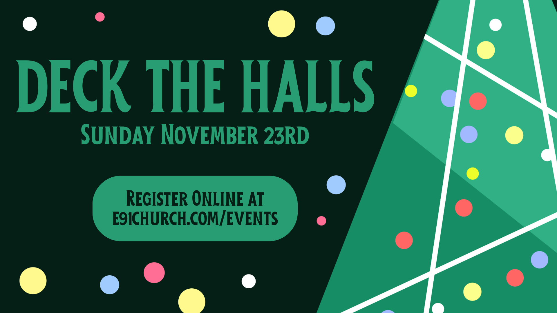 This year, we will be doing things a little bit differently from previous years. You will now sign up for the area and TIME that you would like to decorate. We will be decorating different areas of the church at different times (after each service) on November 23rd. We will also have an additional day, Deck the Halls - Part 2, the following Sunday (November 30th) to decorate inside of the Worship Center.